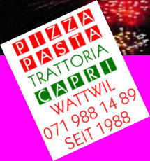 Das ganze CAPRI-Team wünscht allen Gästen ein gutes Neues Jahr !S i l v e s t e r m e n uErbsensuppe mit gebratenen Speckstreifen CHF 8.00***Lachstatar mit ToastbrotCHF 18.00***Kalbskotelett an Kräutersauce Safranrisotto und GrillgemüseCHF 37.00***oderSt. Gotthard-Zanderfilet auf Safranrisottomit GrillgemüseCHF 37.00***Apfel-Zimtmousse mit Rahm CHF 7.00***Ganzes MenüCHF 65.00